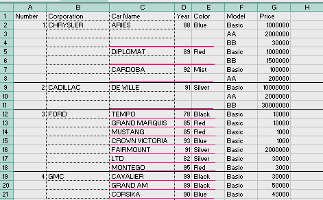 'Sheet1'. It presents every 'Corporation'. The 'CARS' tag is a direct parent of