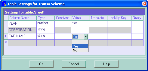 -s[SourceFileName] -n[SourceTableName/or Number] -g[TargetTypeName] -t[TargetFileName] -m[MappingMethod] -w[WritingMethod] -l[NeedXSLtemplate] -h[NeedXLSheader] -r[ShowRegForm] -help -![+|-] |