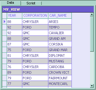 Then you could select "Data" tab button and browse data grid to move through the query result. You can now query created view as if it were a single database table. |